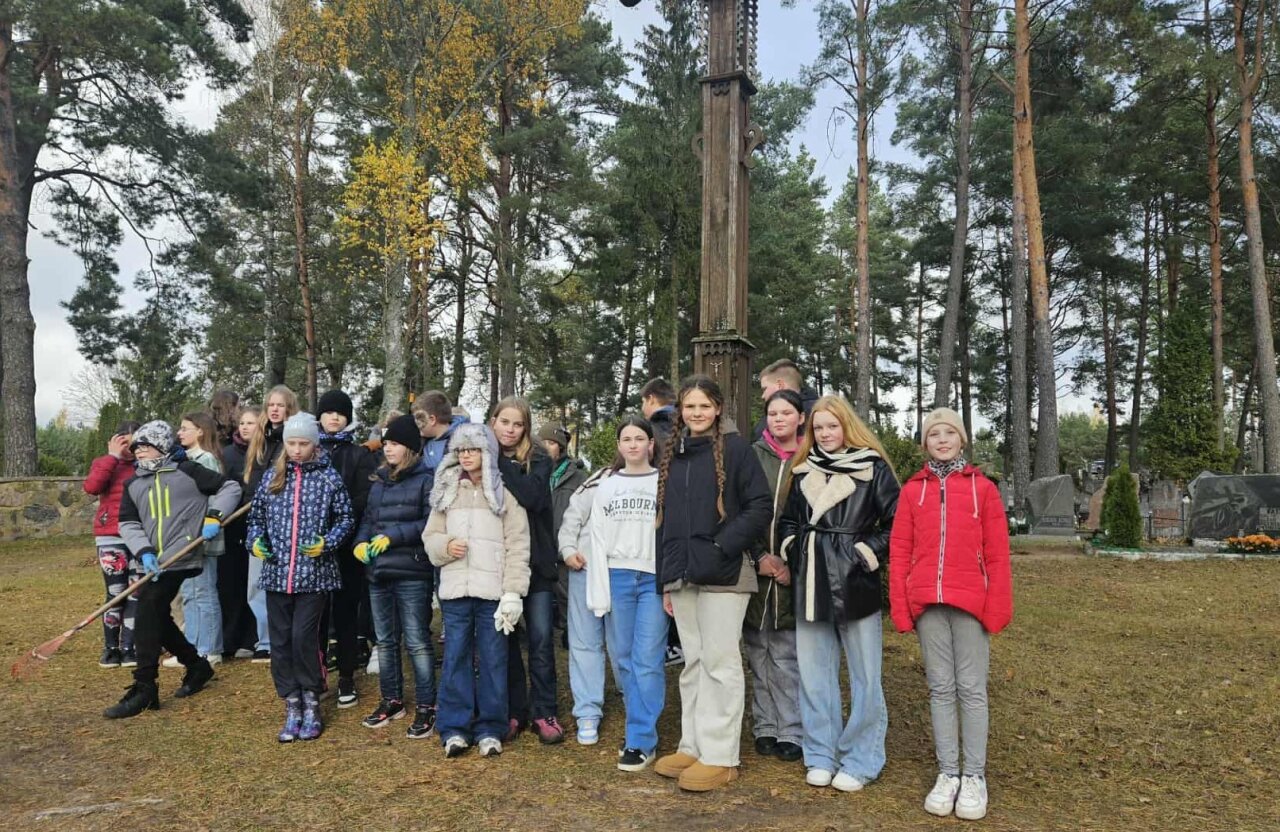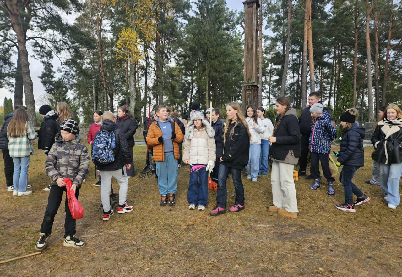 Prie kapinių vartų visus pasitiko kapinių prižiūrėtoja Sigita Lingienė, ji pasidžiaugė gausiu talkininkų būriu ir parodė tvarkytinus kapinių plotus. Mokiniai, pasiskirstę klasėmis, entuziastingai ėmėsi darbo. Vaikai grėbė nukritusius medžių lapus nuo senųjų kapinių takų, rinko šakas, tvarkė apleistus, neprižiūrimus kapus. Darbo buvo daug, tad laikas neprailgo. Vėliau mokiniai rinkosi prie kryžiaus, skirto tremtiniams pagerbti, liudijančio praeities įvykius ir asmenines istorijas, tvarkė teritoriją aplink jį, degė atminimo žvakutes. Neužmiršti liko ir Lietuvos karių savanorių kapai. Mokiniai, juos sutvarkę, žuvusiuosius pagerbė tylos minute.