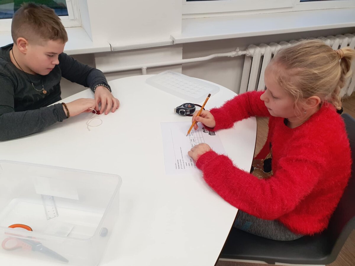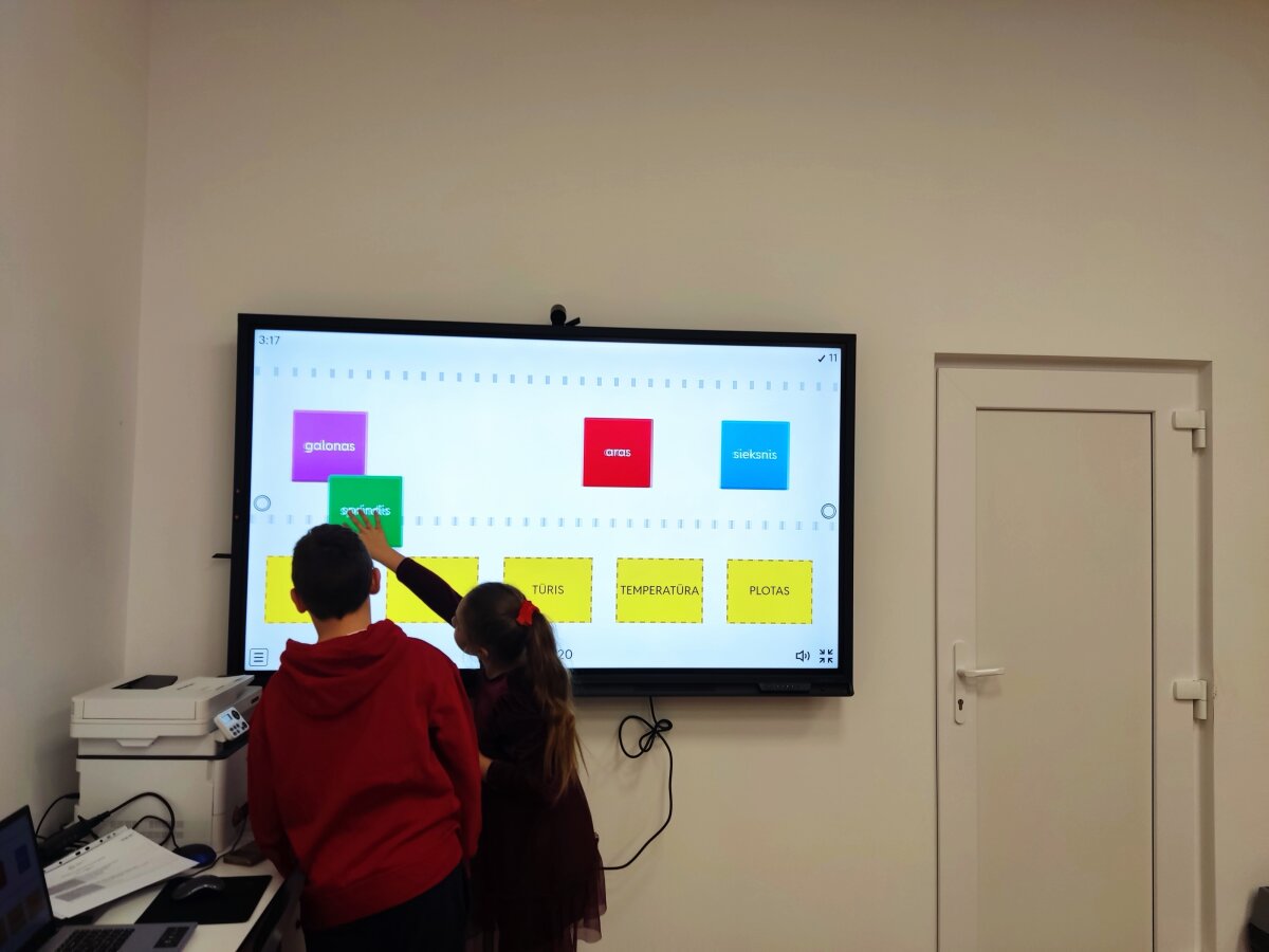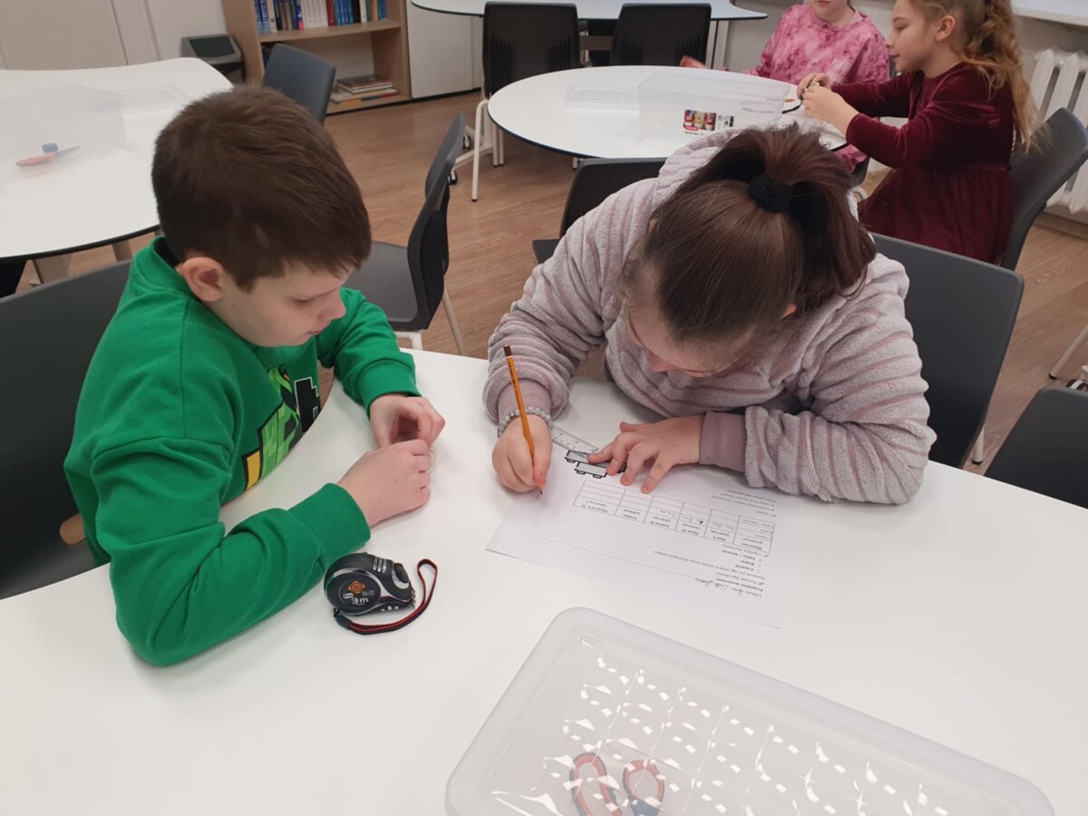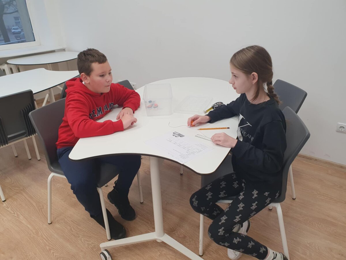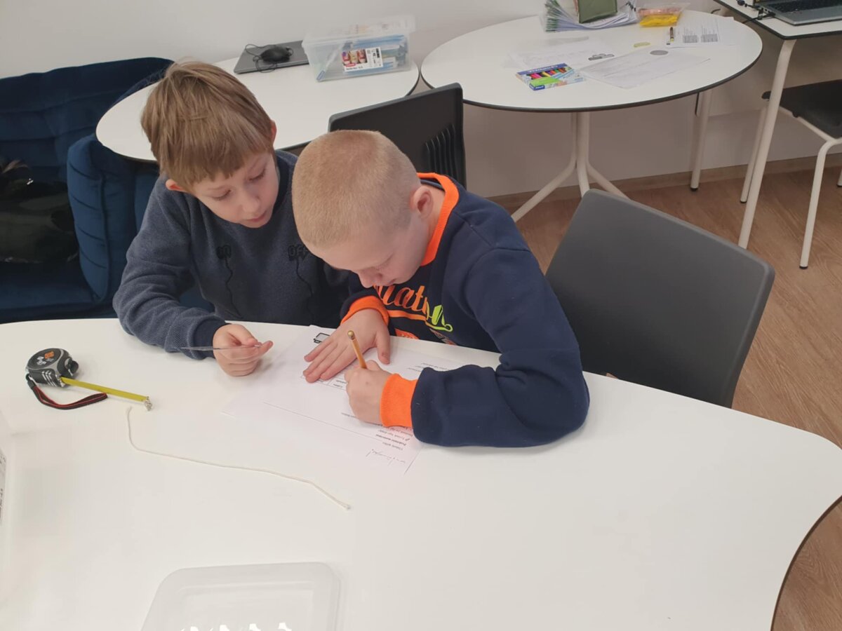 Pirmoji veikla, skirta matavimo vienetams, prasidėjo nuo gyvos diskusijos. Ketvirtokai svarstė, kaip žmonės matavo daiktus senovėje, kai dar nebuvo nei liniuočių, nei ruletės, ir ar pats žmogaus kūnas galėjo tapti matavimo priemone. Netrukus teoriniai svarstymai peraugo į praktiką – mokiniai stalų ilgius matavo coliais ir sprindžiais, o gauti rezultatai leido pastebėti, kad skirtingi „prietaisai“ duoda nevienodą tikslumą. Vėliau vaikai dirbo su liniuote, rulete ir siūlu, matavo lego detales, lygino skirtingų matavimo būdų rezultatus, aptarė galimas paklaidas ir ieškojo tiksliausio matavimo būdo. Ypač įtraukė užduotis susikurti savitą matavimo vienetą – „ratą“, kuriuo mokiniai matavo klasės objektus, skaičiavo atstumus ir gilino supratimą apie trupmenas. Ši veikla padėjo ne tik sustiprinti matematinius gebėjimus, bet ir ugdė loginį mąstymą, pastabumą bei gebėjimą dirbti kartu.