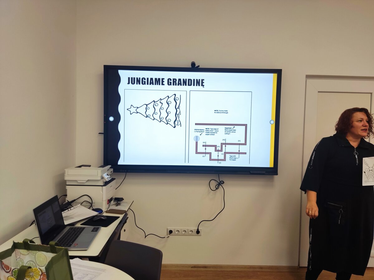 Antroji atvira STEAM veikla buvo skirta šviesai ir jos šaltiniams. Ketvirtokai aiškinosi, kuo skiriasi natūralūs ir dirbtiniai šviesos šaltiniai, diskutavo, kur juos sutinkame kasdienėje aplinkoje ir kodėl šviesa yra būtina žmogaus gyvenime. Netrukus teorines žinias pakeitė praktinė veikla – mokiniai jungė paprastas elektros grandines, dirbo su baterijomis, laidais ir LED lemputėmis. Šias žinias jie pritaikė kurdami šviečiantį kalėdinį atviruką: ieškojo sprendimų, kaip saugiai ir taisyklingai įmontuoti šviesos elementus, kad atvirukas ne tik šviestų, bet ir būtų estetiškas. Kūrybinėje dalyje vaikai dekoravo savo darbus, derino spalvas, formas ir šviesos efektus. Pristatydami atvirukus, mokiniai mokėsi aiškiai pristatyti savo idėją, įvardyti, kas pavyko, su kokiais sunkumais susidūrė, ir pasidžiaugti galutiniu rezultatu, kuris sujungė technologijas, inžineriją ir meninę raišką.