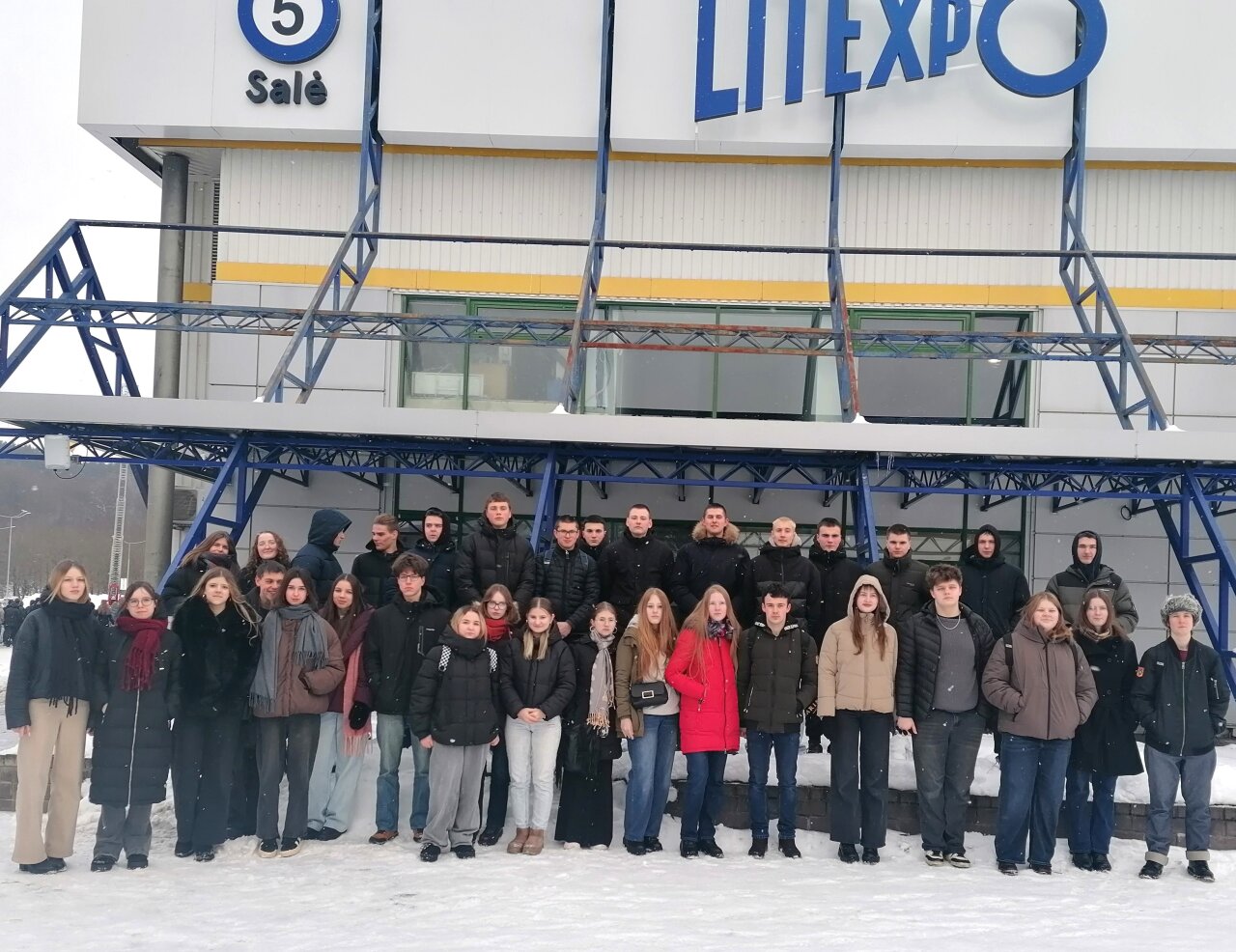 Dusetų mokiniai prie Litexpo rūmų