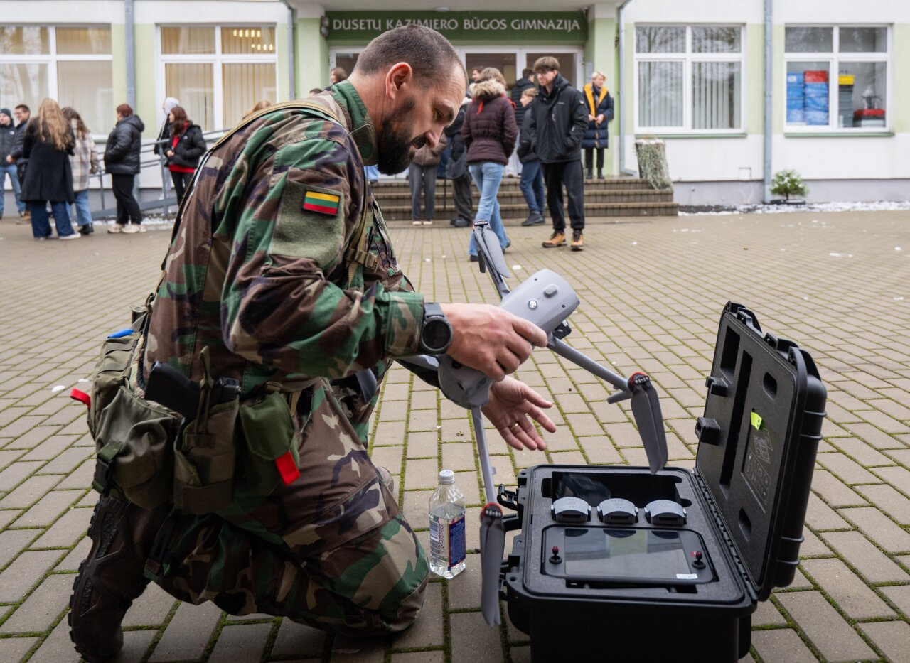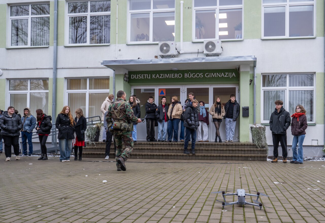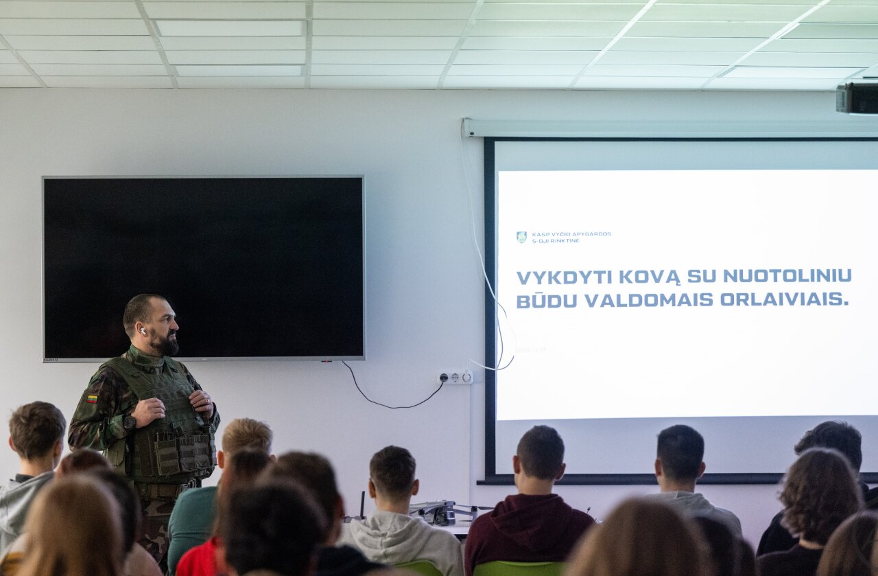 Į pamoką atvyko Lietuvos šaulių sąjungos Plk. Prano Saladžiaus šaulių 9-osios rinktinės dronų kuopos savanoris Edvardas Zavackas, kuris mokiniams pristatė modernias šiluminio vaizdo, infraraudonųjų spindulių ir dronų technologijas bei jų realias panaudojimo galimybes.