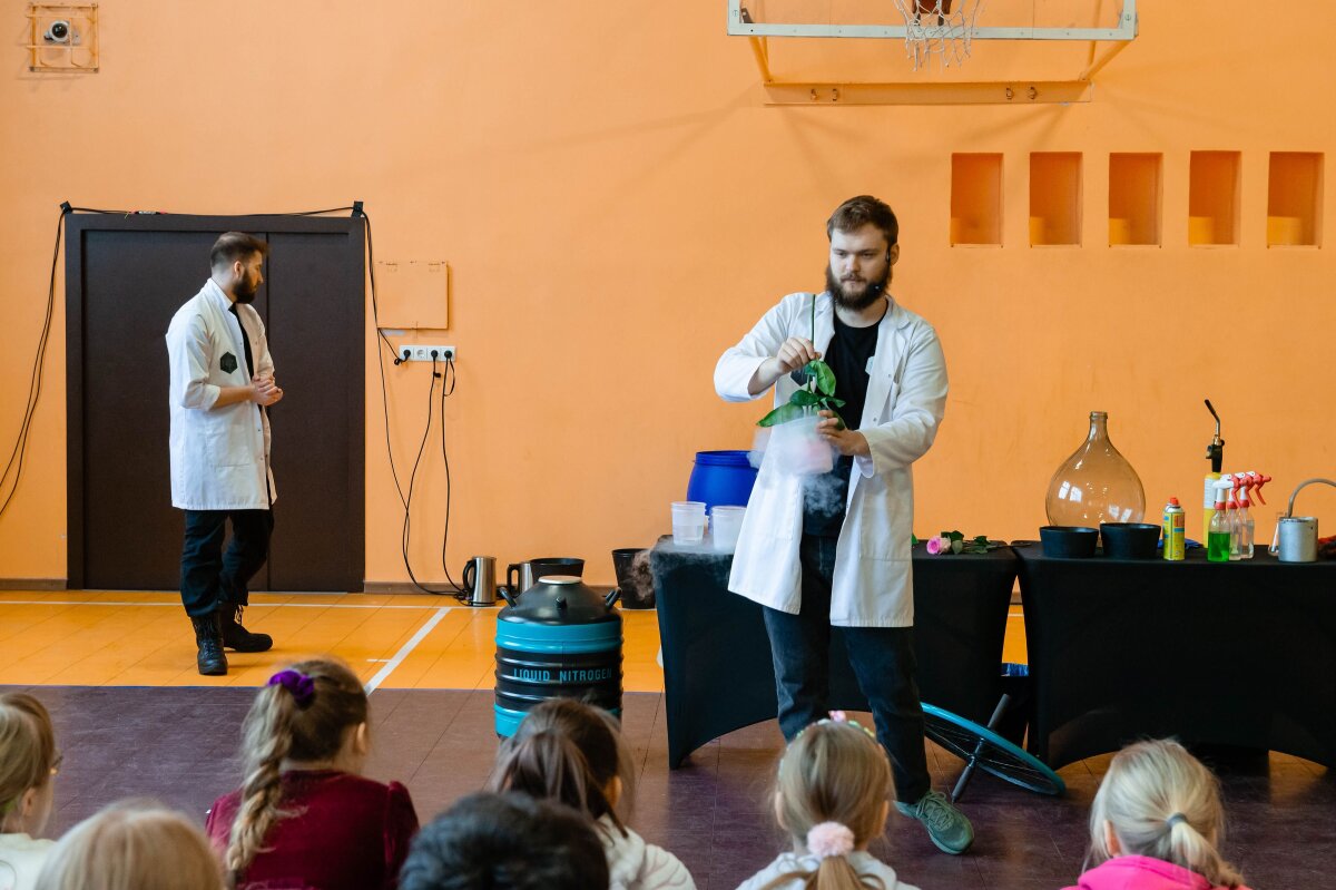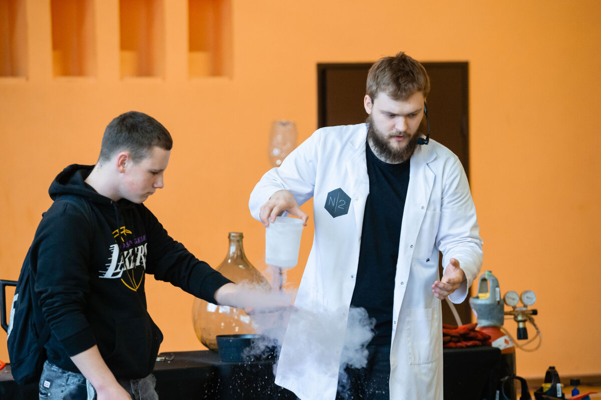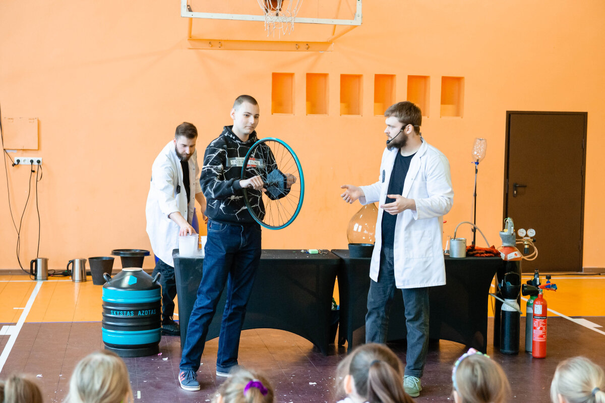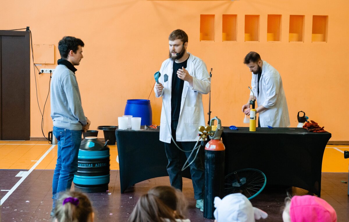 Vasario 12 diena mūsų gimnazijoje buvo ypatinga diena – mus aplankė N2 komanda, kuri daugiau nei 10 metų demonstruoja mokslinius eksperimentus įvairiuose renginiuose. Mokslininkai pristatė įdomius ir įspūdingus cheminius eksperimentus. Pasirodymo metu dalyviai supažindino su fizikiniais bei cheminiais reiškiniais. Sporto salėje buvo paruošta speciali įranga, apsauginės priemonės ir įvairios medžiagos. Pirmiausia svečiai priminė, kaip svarbu laikytis saugumo taisyklių dirbant su cheminėmis medžiagomis. Tik tada prasidėjo tai, ko visi labiausiai laukė – eksperimentai. Kad pasirodymai nepasimirštų dar ilgai, kvietė drąsiausius žiūrovus patiems išbandyti eksperimentus. Jau nuo pirmų akimirkų buvo aišku, kad tai nebus įprasta pamoka.