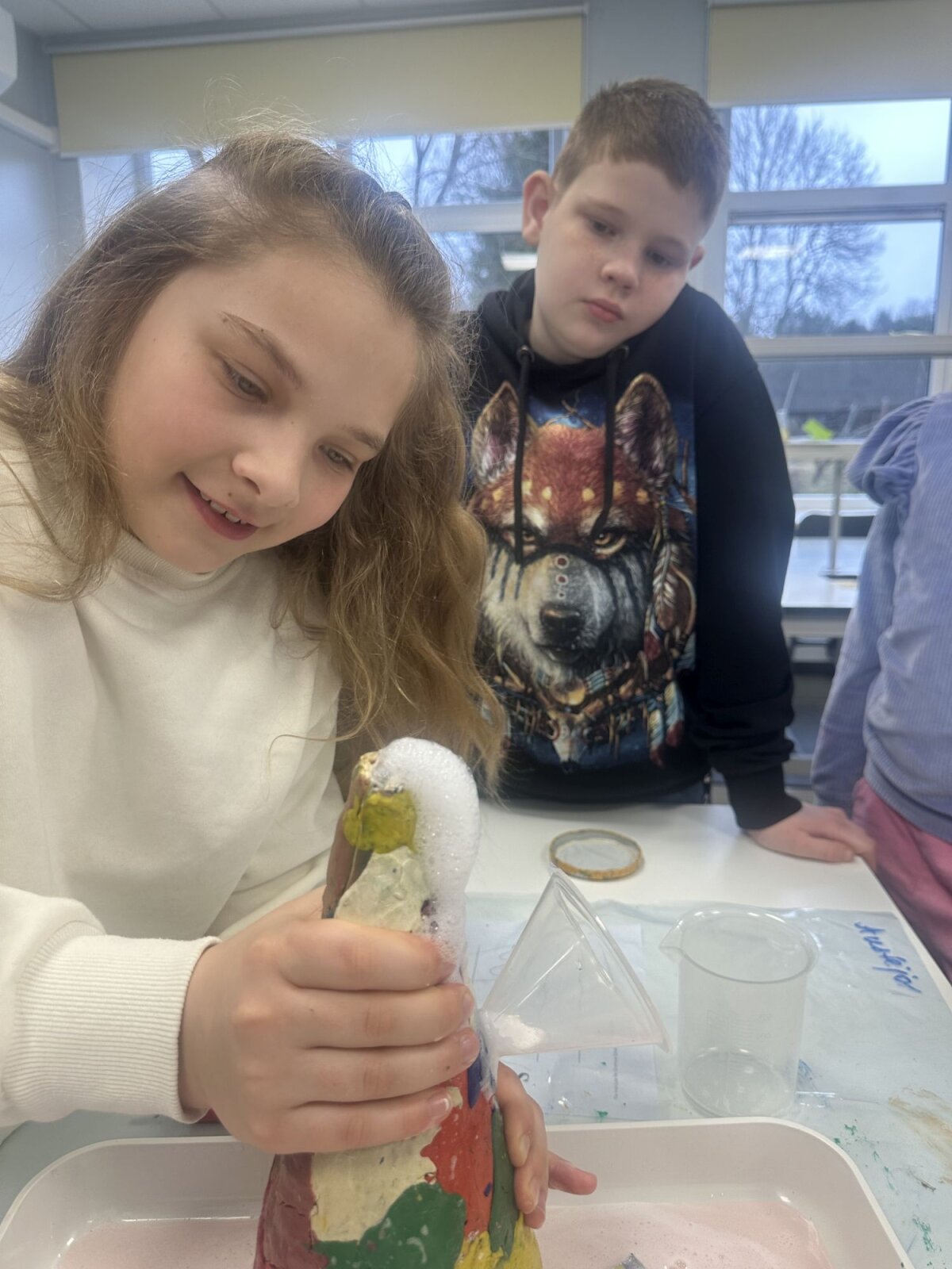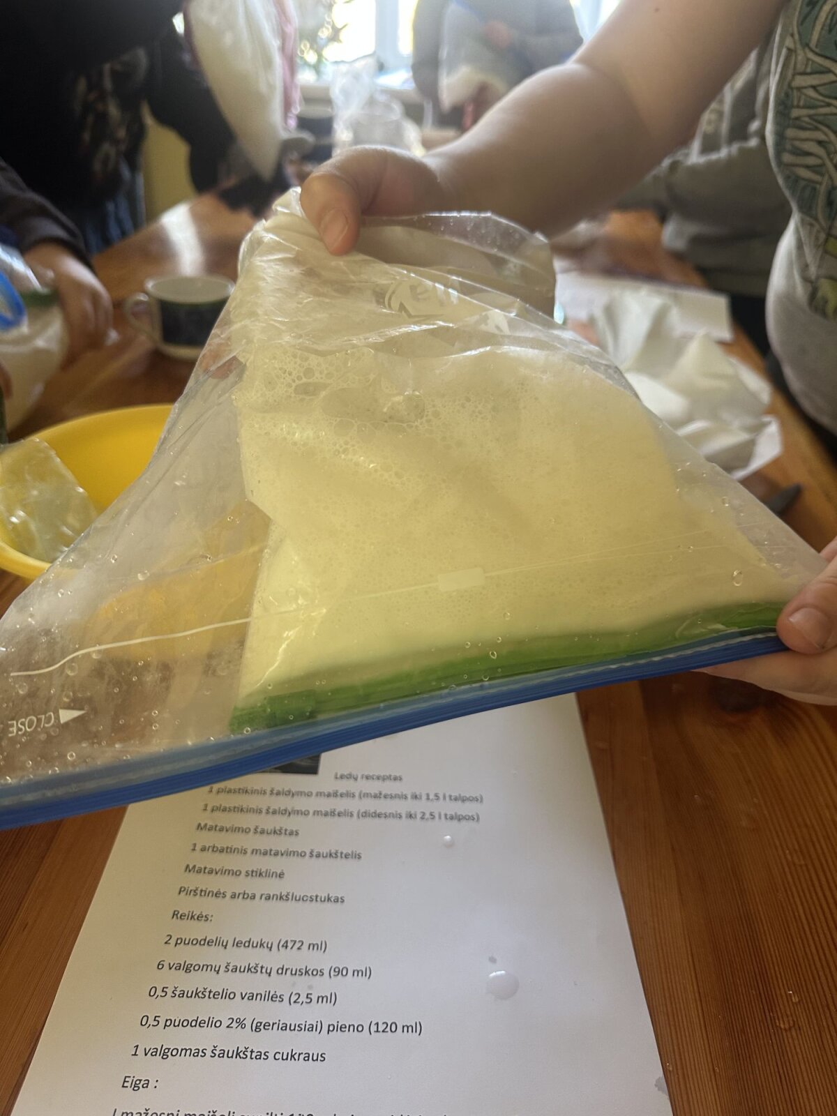 Ketvirtokų pavasario STEAM veiklos tema „ Eksperimentai laboratorijoje ir virtuvėje. Medžiagų būsenų kitimas. Ledų „gamyba“. Mokiniai pakartojo vandens būsenas (kietoji, skystoji, dujinė).Laboratorijoje atliko nesudėtingus bandymus. Formulavo hipotezę ir atliko tyrimą. Rezultatus mokiniai fiksavo tyrimų lapuose. Atliko kūrybinę užduotį – kūrė savo svajonių ledus. Darbai eksponuojami klasės parodų erdvėje. Po to planavo ledų gaminimo procesą. Skaitė receptą, susipažino su gaminimo eiga. Pasiruošė reikalingas priemones ledų gamybai. Panaudojant ledo kubelius, druską, 2 plastikinius maišelius ir produktus ledams (pienas, vanilė, cukrus) buvo gaminami ledai. Jie skaninami atsineštais mėgstamais priedais, dekoruojami ir degustuojami. Chemijos laboratorijoje buvo atliko nesudėtingus bandymus su šnypščiosiomis tabletėmis, su soda ir actu. Buvo Išsiaiškinta, kad šias medžiagas sumaišius vyksta reakcija- išsiskiria dujos (anglies dvideginis). Kyla slėgis. Kitą pamoką vaikai žiūrėjo filmuotą medžiaga apie Etnos ugnikalnio išsiveržimą. Aiškinosi kodėl ugnikalnis išsiveržia ir kas vyksta išsiveržimo metu. Laboratorijoje atliko eksperimentą „Ugnikalnio išsiveržimas“. Mokiniai dirbo grupėse ir savarankiškai (mokytojos prižiūrimi) atliko eksperimentą. Vaikai džiaugėsi kai „lava“ išsiveržė. Mokiniai grupėse atliko kūrybinę užduotį „Slėgis“ ir ją pristatė. Vyko diskusija :„ Ar šis procesas vyksta ir virtuvėje?“ Mokiniai žinojo, kad į kepinius dedami kepimo milteliai ar soda kildina kepinius.